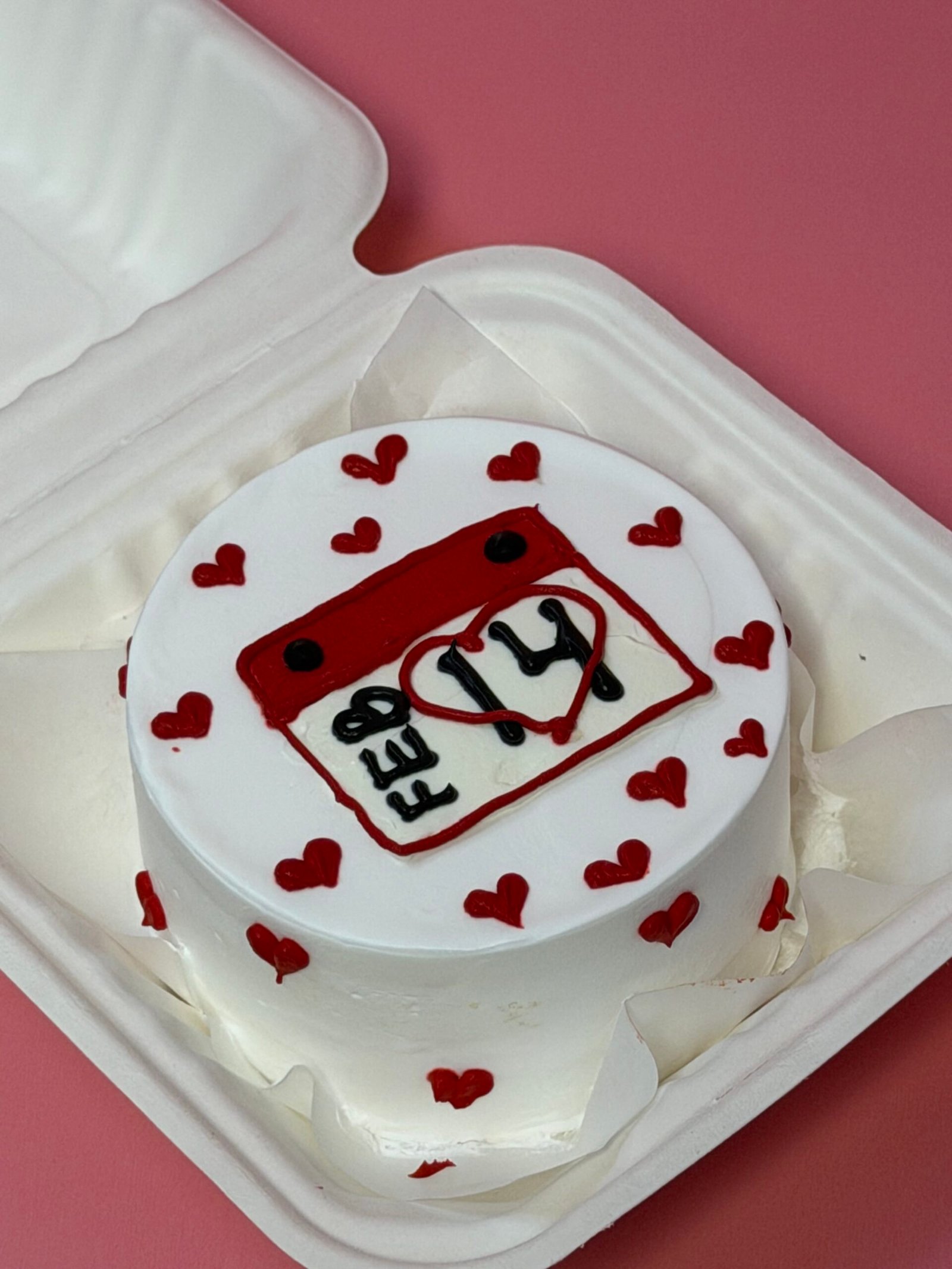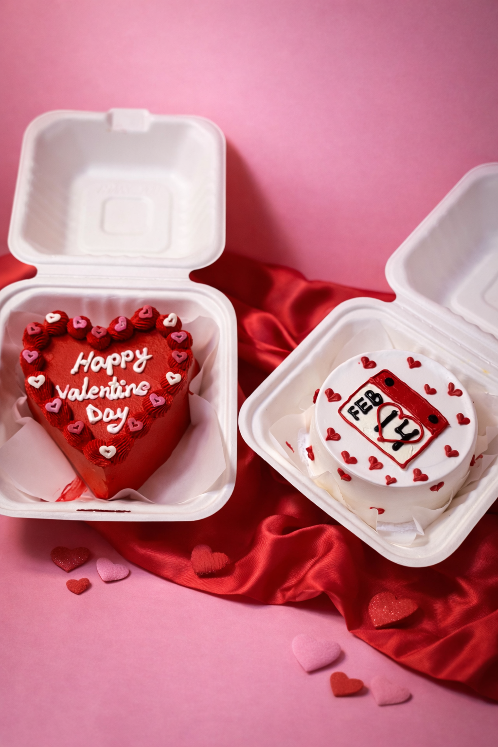 4 inches ,200 grams cake (1- 2 people ) ,A soft, indulgent cake made to celebrate love. Layers of rich, moist sponge paired with smooth cream and finished with delicate Valentine’s details—because every love story deserves something sweet.