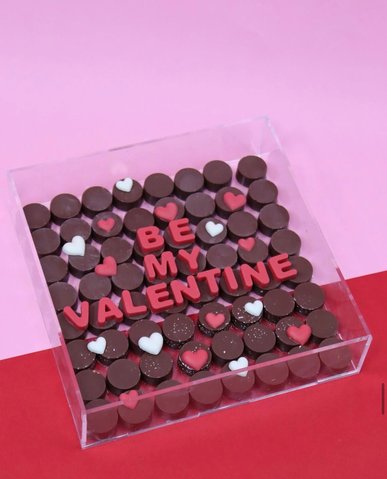 64 pcs truffle bites topped with message in acrylic box .