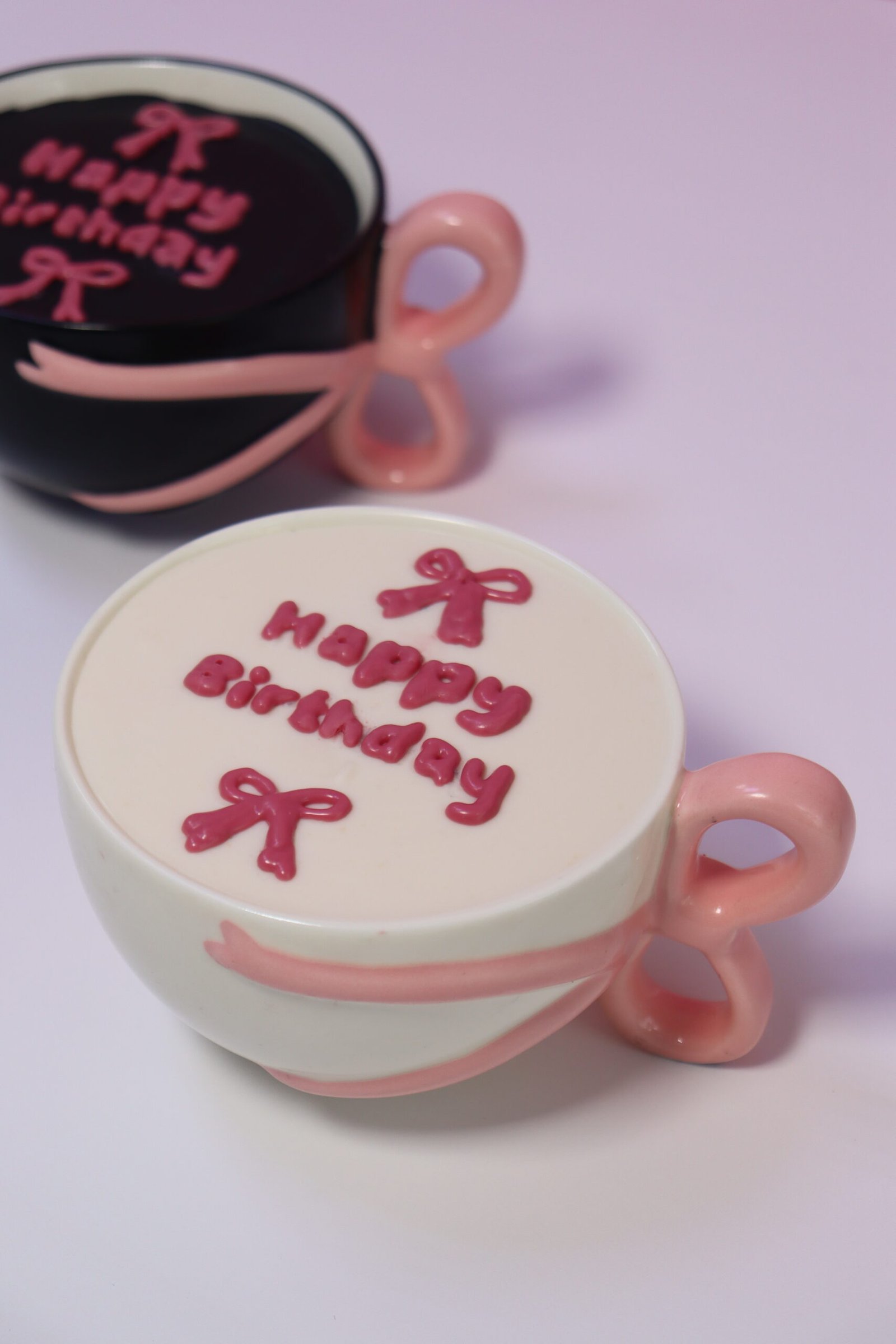 White mug pink bow Delight